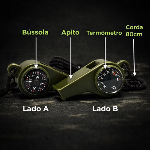• Detalhe premium: acabamento metálico que reforça o estilo militar